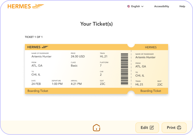 Finally, users will see their tickets displayed on the screen, exactly how it will be printed.